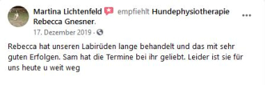 © Copyright 2023 Rebecca Gnesner - Hundephysiotherapie 46325 Borken - Tel: 0177-2937734